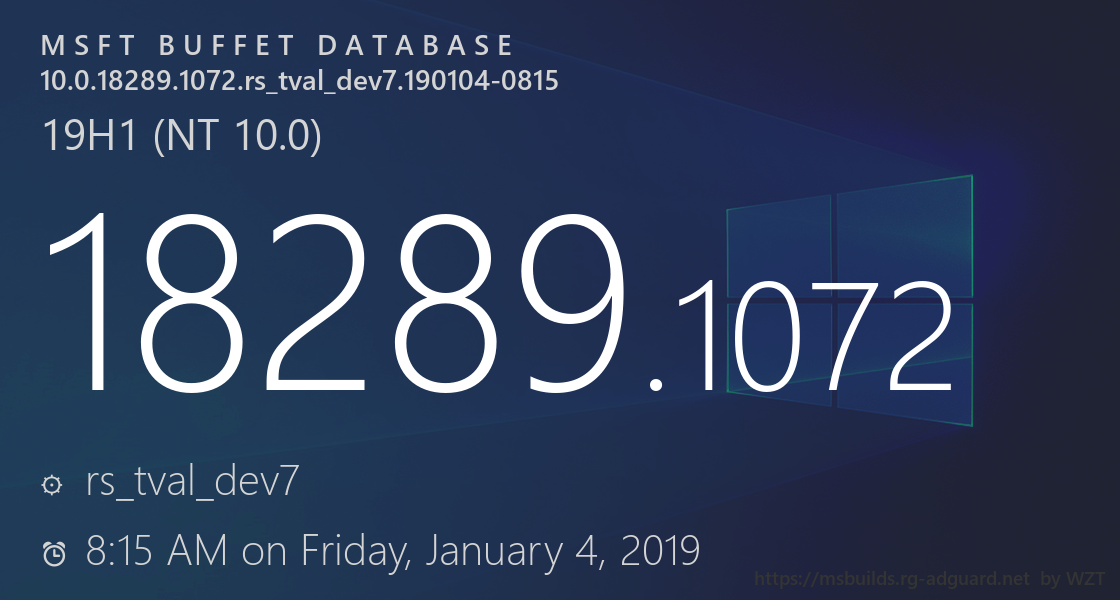 10.0.18289.1072.rs_tval_dev7.190104-0815 | |