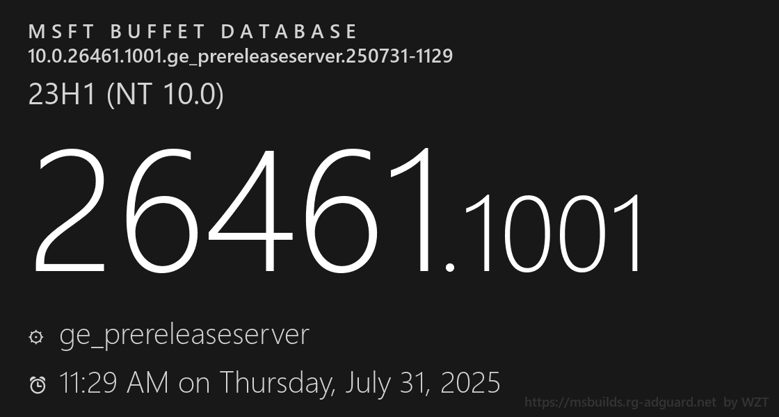 10.0.26461.1001.ge_prereleaseserver.250731-1129 | |