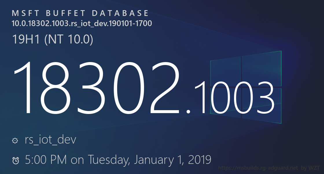 10.0.18302.1003.rs_iot_dev.190101-1700 | |