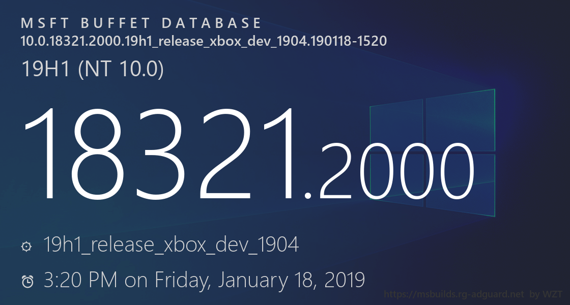 10.0.18321.2000.19h1_release_xbox_dev_1904.190118-1520 | |