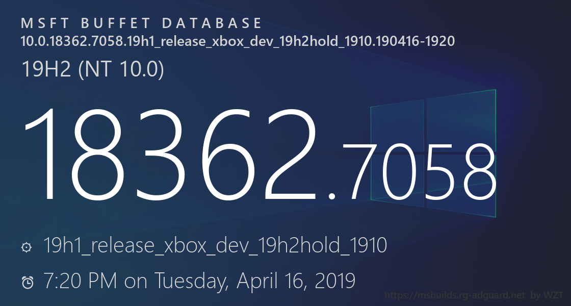 10.0.18362.7058.19h1_release_xbox_dev_19h2hold_1910.190416-1920 | |