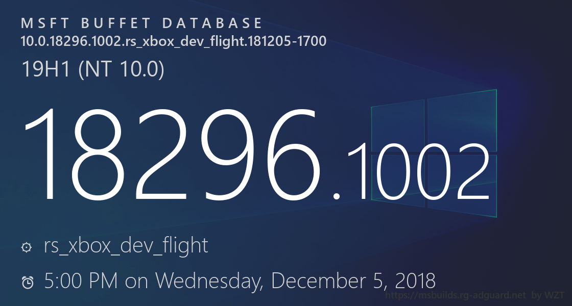10.0.18296.1002.rs_xbox_dev_flight.181205-1700 | |